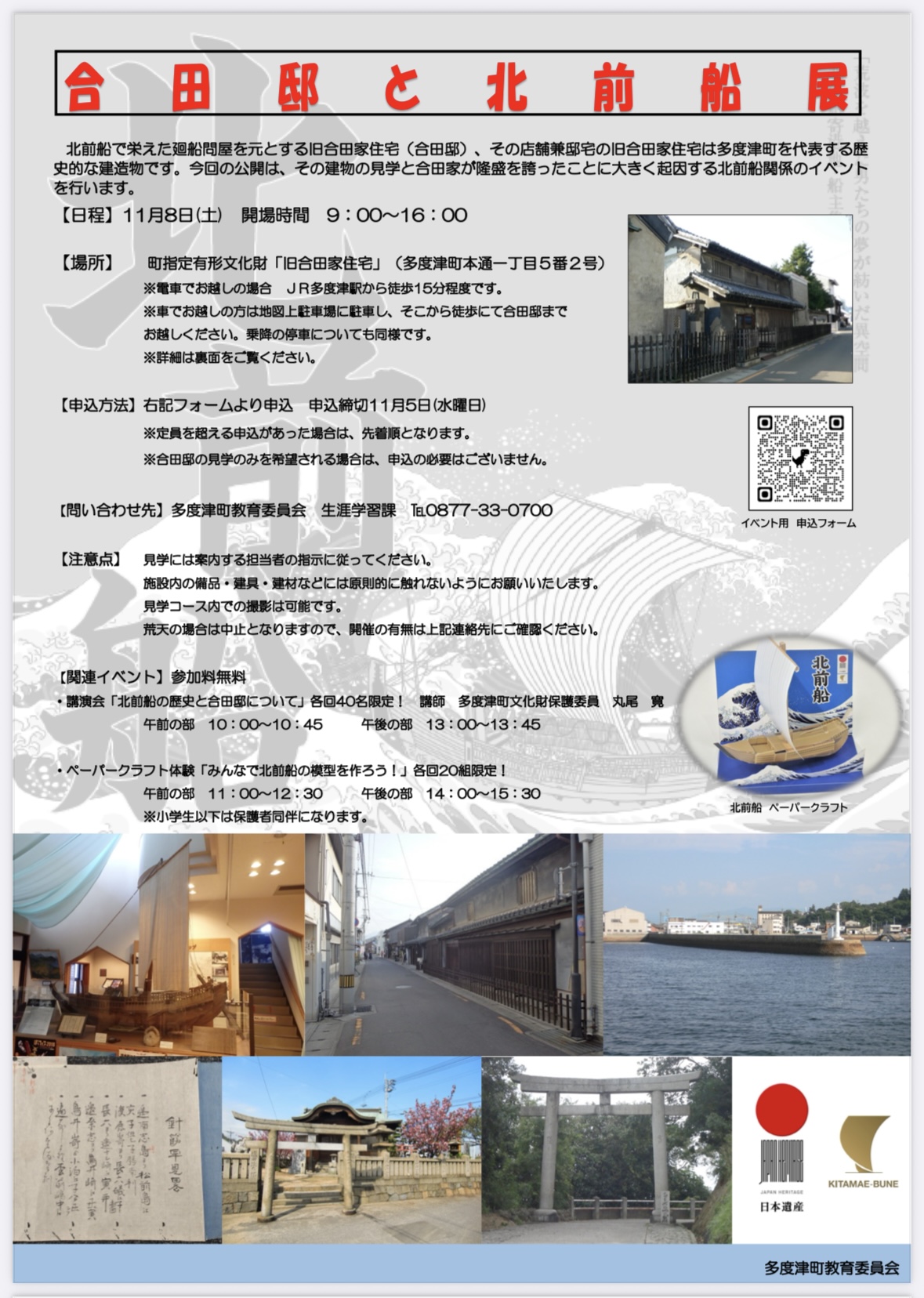 ・講演会「北前船の歴史と合田邸について」各回40名限定! 講師 多度津町文化財保護委員 丸尾 寛