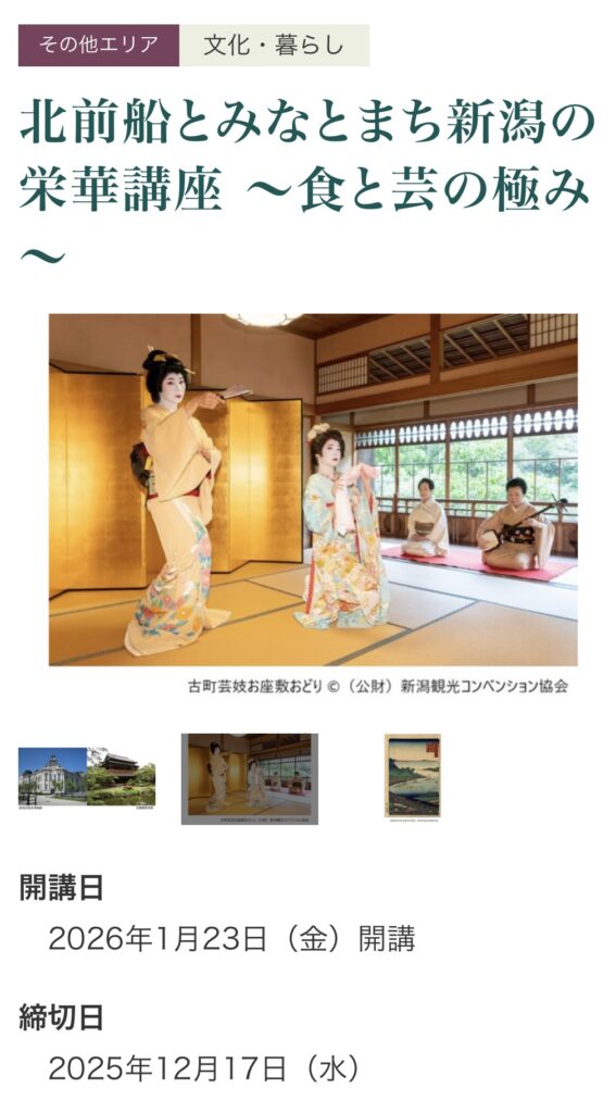 新潟県と新潟市の事業で、JR東日本「大人の休日倶楽部」会員様向けに「北前船とみなとまち新潟の栄華講座」