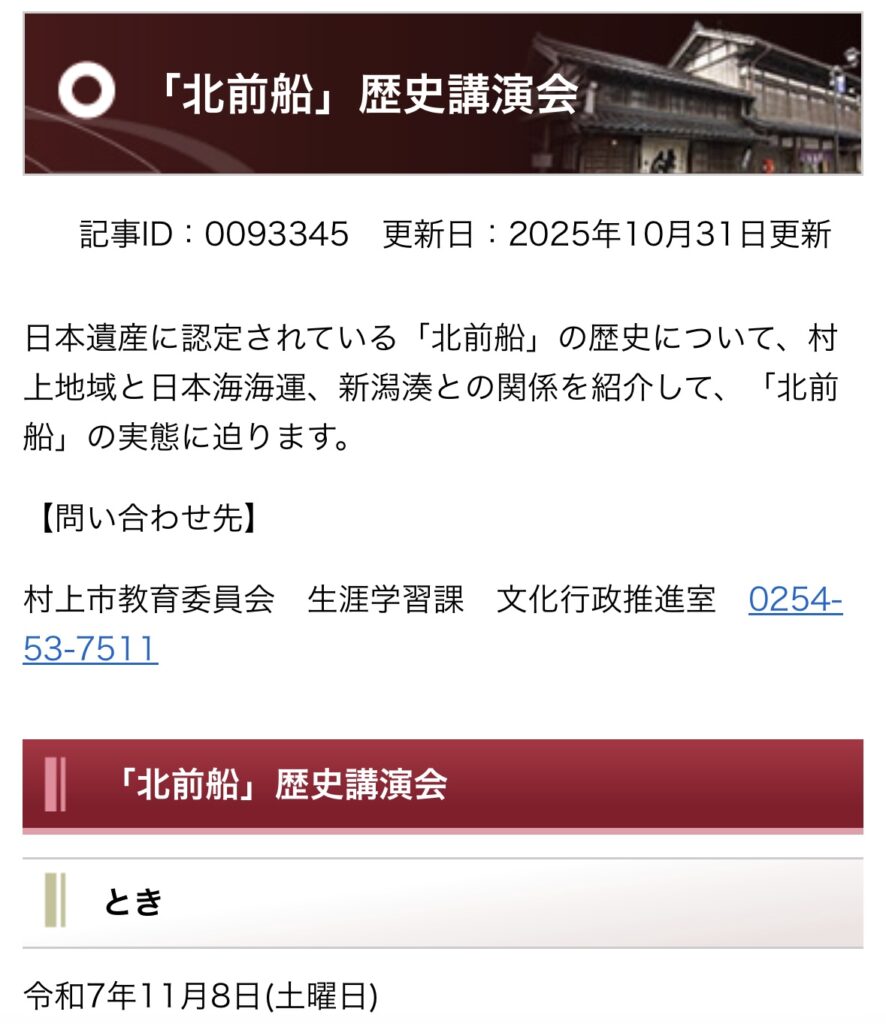 ・講演 「北前船」と日本海海運~現村上・新潟市域を見ながら~