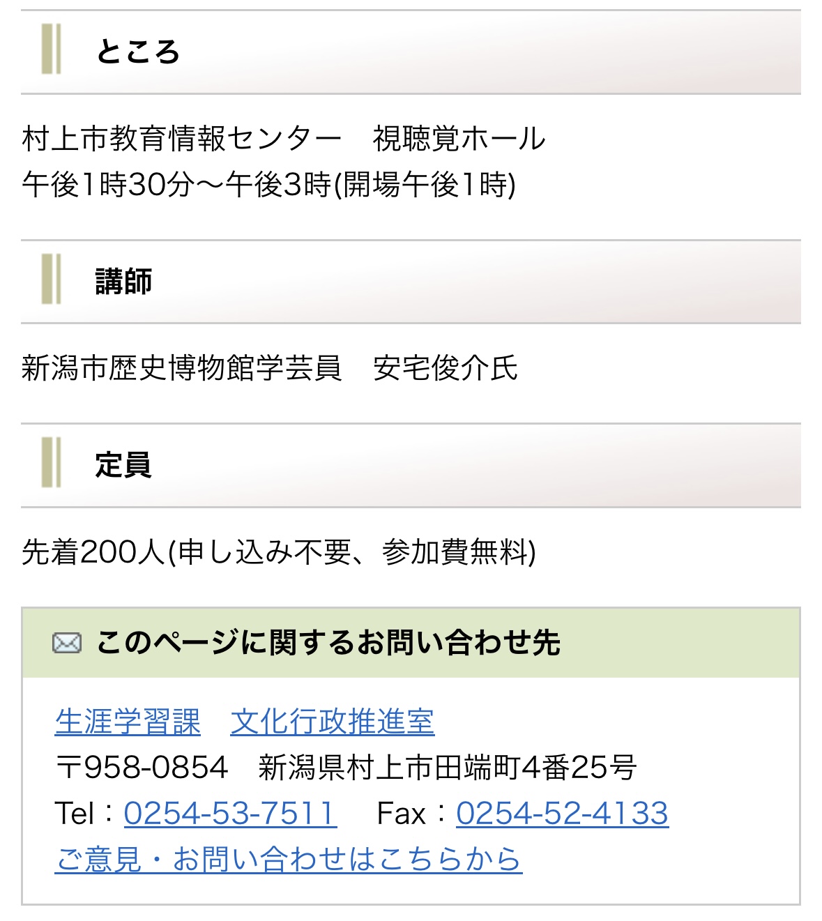 13:40 講演(60分) 新潟市歴史博物館学芸員 安宅俊介 氏