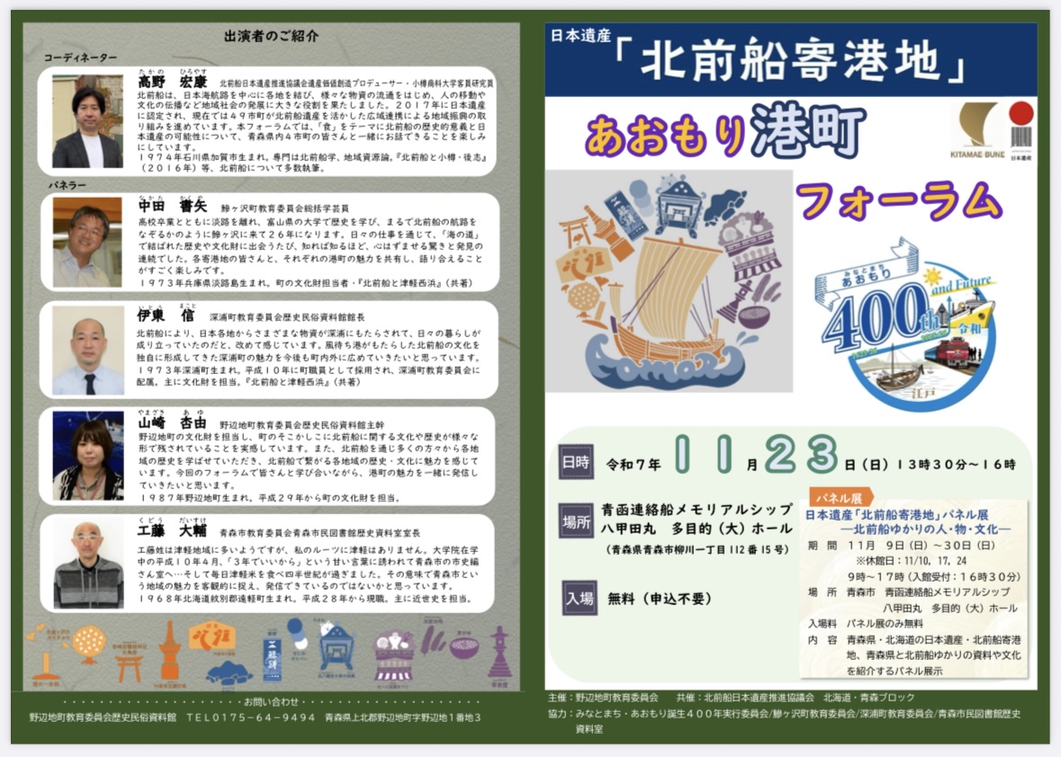 11月23日(日)に日本遺産「北前船寄港地」あおもり港町フォーラムが開催されます。
