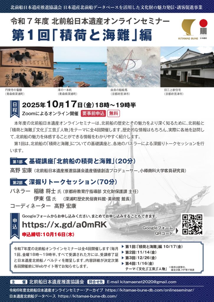 「令和7 年度 北前船日本遺産オンラインセミナー」開催のお知らせ